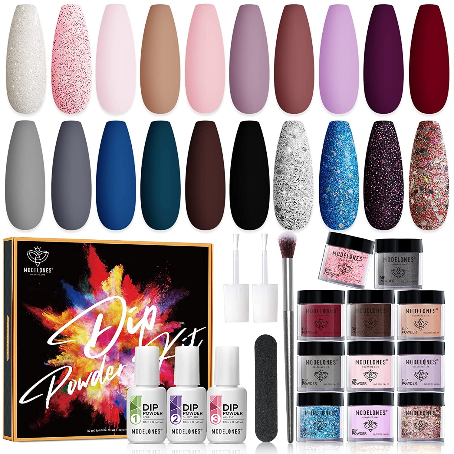 Modelones 20 Colors Dip Powder Nail Kit Starter Nude Pink Gray Collection Acrylic Dipping Powder System Essential Liquid Set With Base Top Coat Walmart Com