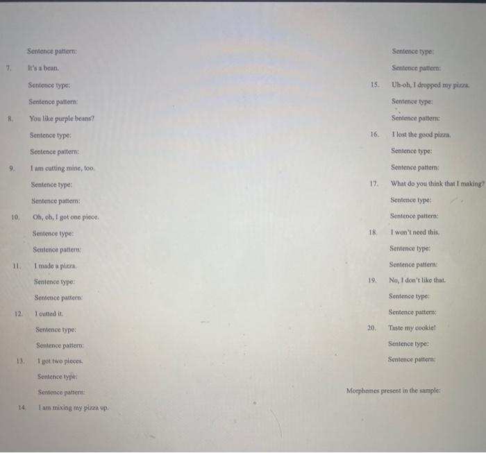 Language Sample Transeript And Analysis Worksheet Chegg Com